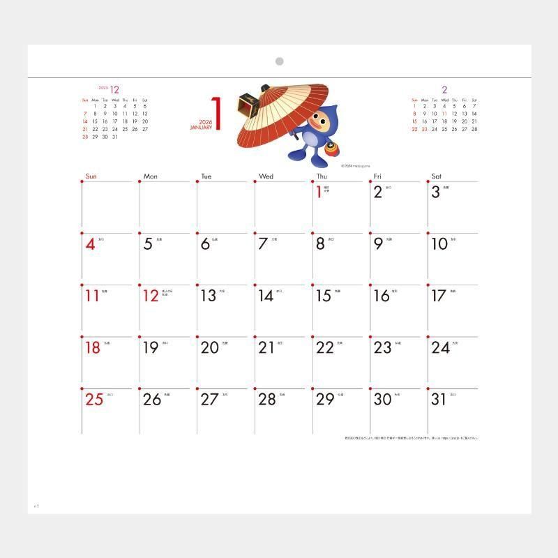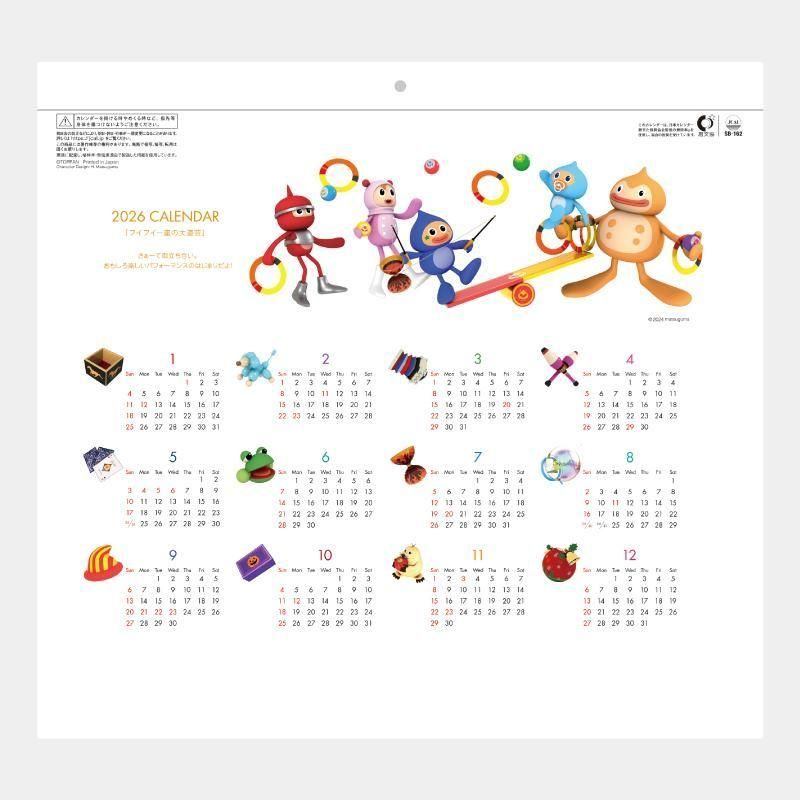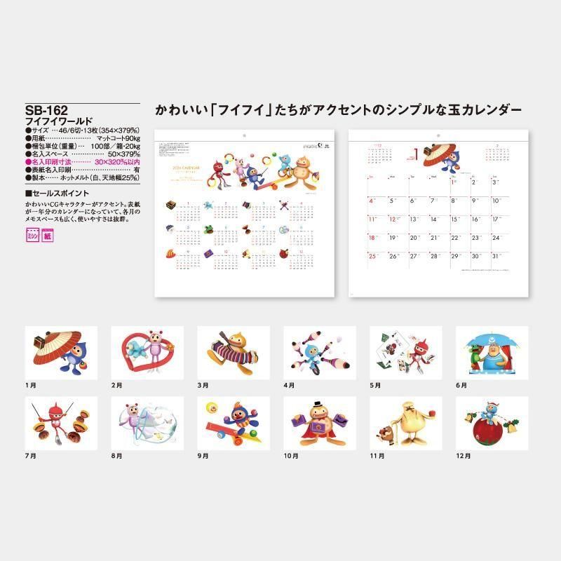 • かわいい「フイフイ」たちがアクセントのシンプルな玉カレンダー。