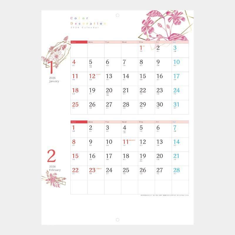 • 2ヶ月ごとに季節を感じる配色で。彩られた絵入り文字月表。