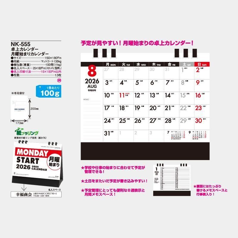 NK-555 卓上 月曜始まりカレンダー NK-558