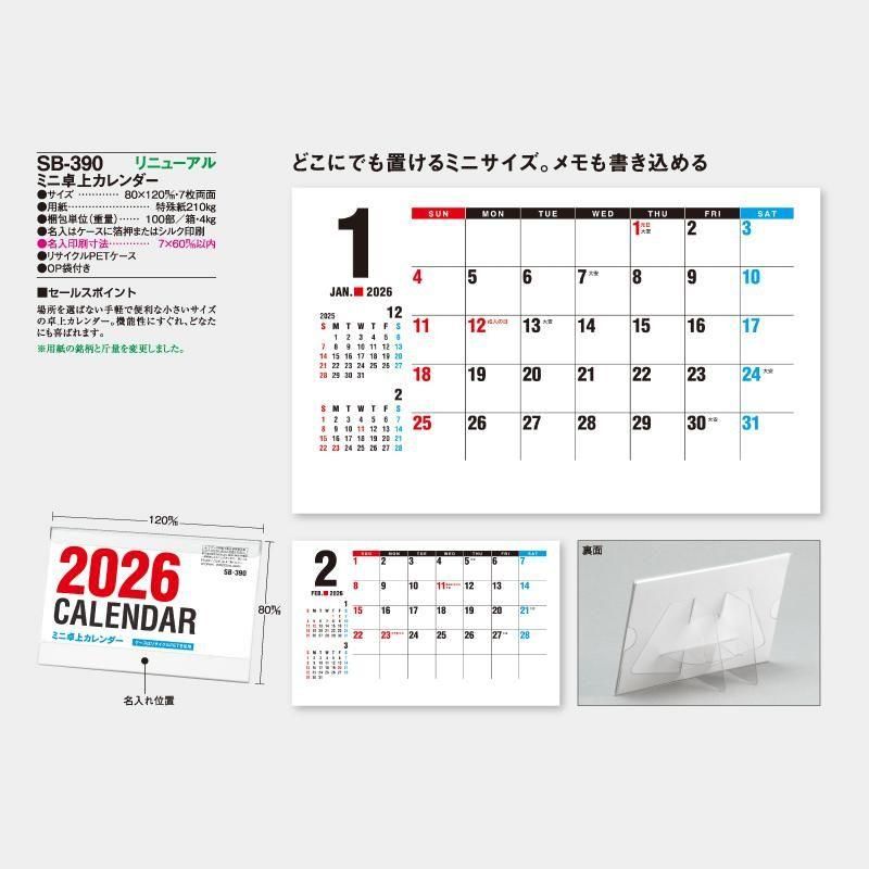 • 場所を選ばない手軽で便利な小さいサイズの卓上カレンダー。 機能性にすぐれ、どなたにも喜ばれます。