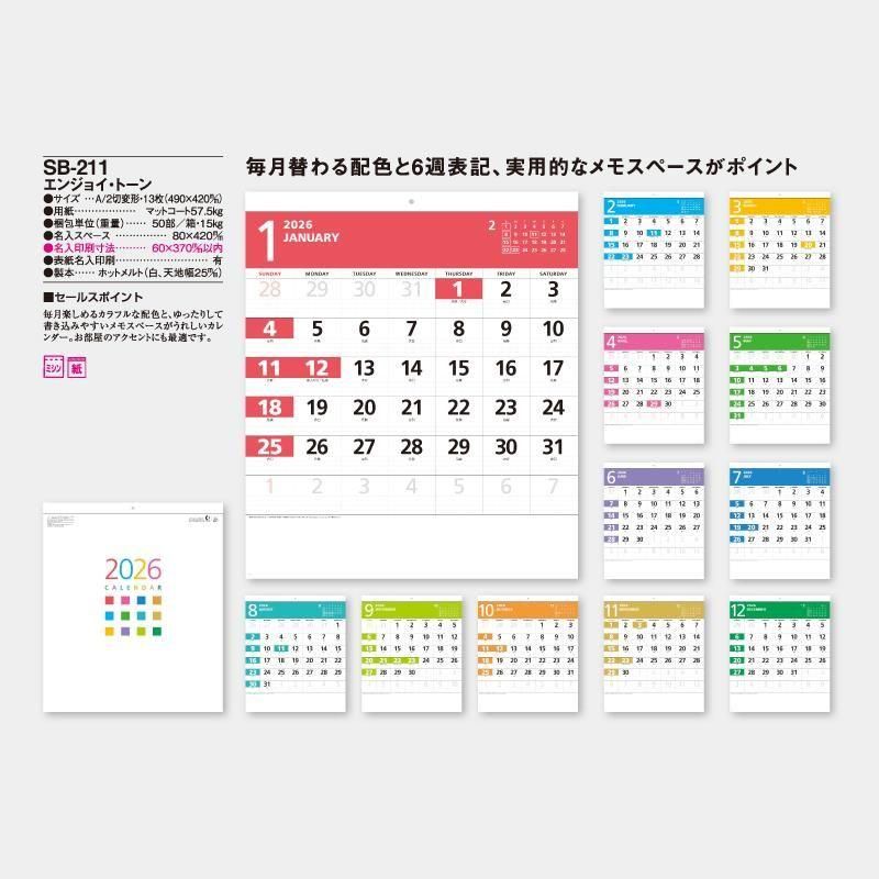 • 毎月楽しめるカラフルな配色と、ゆったりして書き込み安井メモスペースがうれしいカレンダー。 お部屋のアクセントにも最適です。